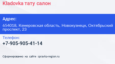 Kladovka, тату-салон по адресу 654018, Кемеровская область, Новокузнецк, Октябрьский проспект, 23 в дальнейшем Организация, размещена в следующих категориях: