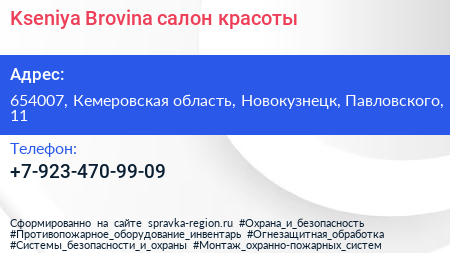Kseniya Brovina, салон красоты по адресу 654007, Кемеровская область, Новокузнецк, Павловского, 11 в дальнейшем Организация, размещена в следующих категориях: