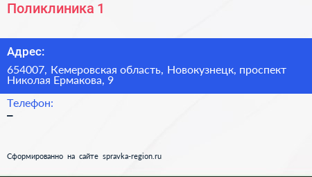Поликлиника №1 по адресу 654007, Кемеровская область, Новокузнецк, проспект Николая Ермакова, 9 в дальнейшем Организация, размещена в следующих категориях: