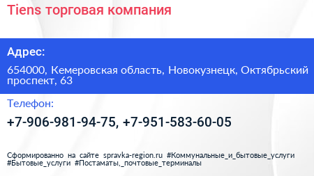 Tiens, торговая компания по адресу 654000, Кемеровская область, Новокузнецк, Октябрьский проспект, 63 в дальнейшем Организация, размещена в следующих категориях:
