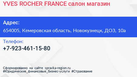 YVES ROCHER FRANCE, салон-магазин по адресу 654005, Кемеровская область, Новокузнецк, ДОЗ, 10а в дальнейшем Организация, размещена в следующих категориях: