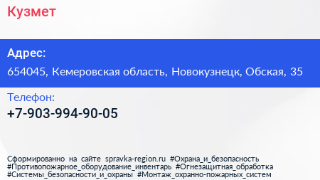 Кузмет по адресу 654045, Кемеровская область, Новокузнецк, Обская, 35 в дальнейшем Организация, размещена в следующих категориях: