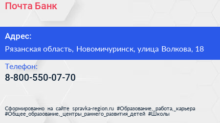Почта Банк по адресу Рязанская область, Новомичуринск, улица Волкова, 18 в дальнейшем Организация, размещена в следующих категориях: