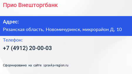 Прио-Внешторгбанк по адресу Рязанская область, Новомичуринск, микрорайон Д, 10 в дальнейшем Организация, размещена в следующих категориях: