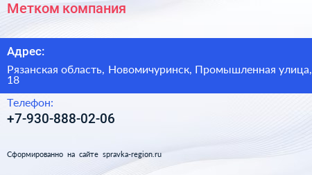 Метком, компания по адресу Рязанская область, Новомичуринск, Промышленная улица, 18 в дальнейшем Организация, размещена в следующих категориях: