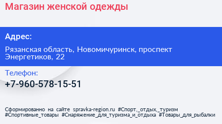 Магазин женской одежды по адресу Рязанская область, Новомичуринск, проспект Энергетиков, 22 в дальнейшем Организация, размещена в следующих категориях: