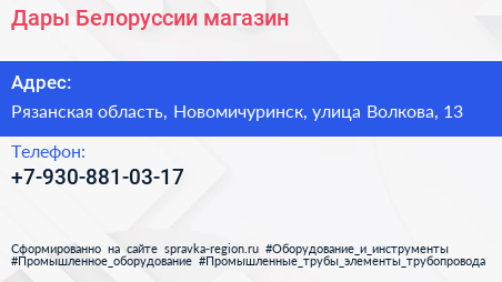 Дары Белоруссии, магазин по адресу Рязанская область, Новомичуринск, улица Волкова, 13 в дальнейшем Организация, размещена в следующих категориях: