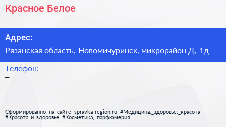 Красное & Белое по адресу Рязанская область, Новомичуринск, микрорайон Д, 1д в дальнейшем Организация, размещена в следующих категориях:
