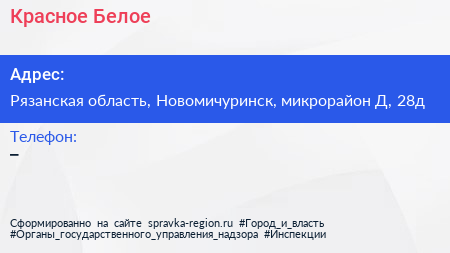 Красное & Белое по адресу Рязанская область, Новомичуринск, микрорайон Д, 28д в дальнейшем Организация, размещена в следующих категориях: