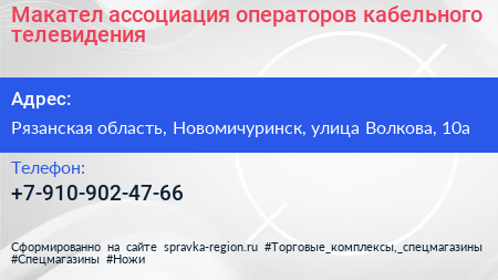 Макател, ассоциация операторов кабельного телевидения по адресу Рязанская область, Новомичуринск, улица Волкова, 10а в дальнейшем Организация, размещена в следующих категориях:
