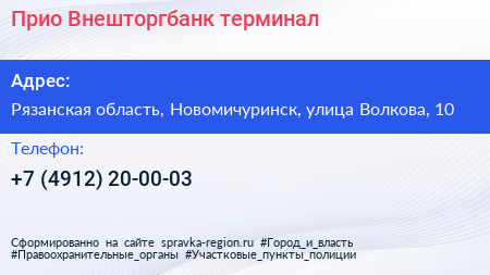 Прио-Внешторгбанк, терминал по адресу Рязанская область, Новомичуринск, улица Волкова, 10 в дальнейшем Организация, размещена в следующих категориях: