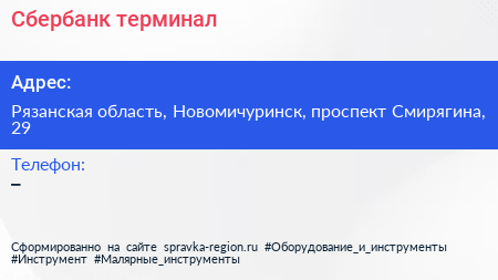 Сбербанк, терминал по адресу Рязанская область, Новомичуринск, проспект Смирягина, 29 в дальнейшем Организация, размещена в следующих категориях: