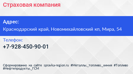 Страховая компания по адресу Краснодарский край, Новомихайловский кп, Мира, 54 в дальнейшем Организация, размещена в следующих категориях: