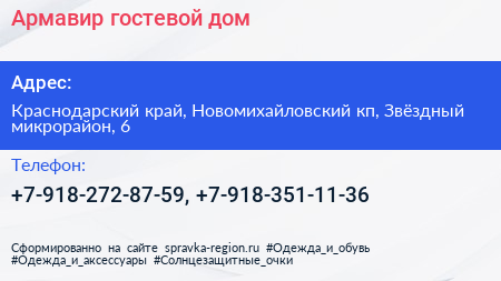 Армавир, гостевой дом по адресу Краснодарский край, Новомихайловский кп, Звёздный микрорайон, 6 в дальнейшем Организация, размещена в следующих категориях:
