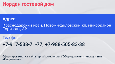 Иордан, гостевой дом по адресу Краснодарский край, Новомихайловский кп, микрорайон Горизонт, 39 в дальнейшем Организация, размещена в следующих категориях: