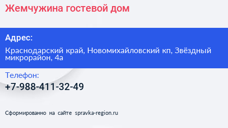 Жемчужина, гостевой дом по адресу Краснодарский край, Новомихайловский кп, Звёздный микрорайон, 4а в дальнейшем Организация, размещена в следующих категориях: