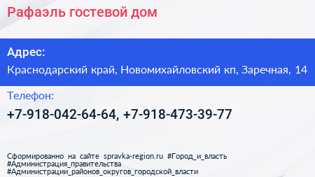 Рафаэль, гостевой дом по адресу Краснодарский край, Новомихайловский кп, Заречная, 14 в дальнейшем Организация, размещена в следующих категориях: