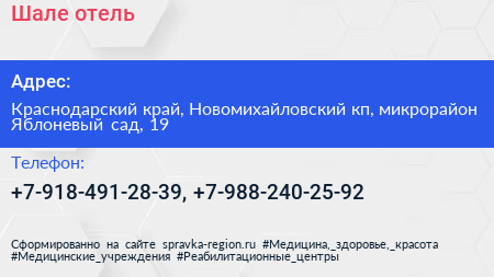 Шале, отель по адресу Краснодарский край, Новомихайловский кп, микрорайон Яблоневый сад, 19 в дальнейшем Организация, размещена в следующих категориях:
