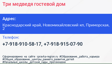 Три медведя, гостевой дом по адресу Краснодарский край, Новомихайловский кп, Приморская, 2 в дальнейшем Организация, размещена в следующих категориях: