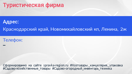 Туристическая фирма по адресу Краснодарский край, Новомихайловский кп, Ленина, 2ж в дальнейшем Организация, размещена в следующих категориях:
