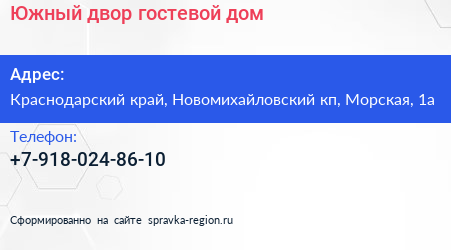 Южный двор, гостевой дом по адресу Краснодарский край, Новомихайловский кп, Морская, 1а в дальнейшем Организация, размещена в следующих категориях: