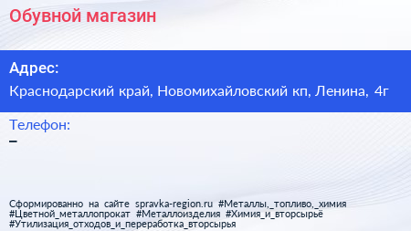 Обувной магазин по адресу Краснодарский край, Новомихайловский кп, Ленина, 4г в дальнейшем Организация, размещена в следующих категориях: