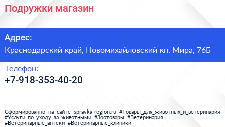 Подружки, магазин по адресу Краснодарский край, Новомихайловский кп, Мира, 76Б в дальнейшем Организация, размещена в следующих категориях:
