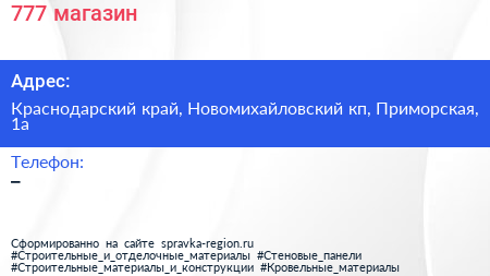 777, магазин по адресу Краснодарский край, Новомихайловский кп, Приморская, 1а в дальнейшем Организация, размещена в следующих категориях:
