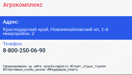 Агрокомплекс по адресу Краснодарский край, Новомихайловский кп, 1-й микрорайон, 2 в дальнейшем Организация, размещена в следующих категориях: