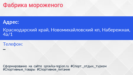 Фабрика мороженого по адресу Краснодарский край, Новомихайловский кп, Набережная, 4а/1 в дальнейшем Организация, размещена в следующих категориях: