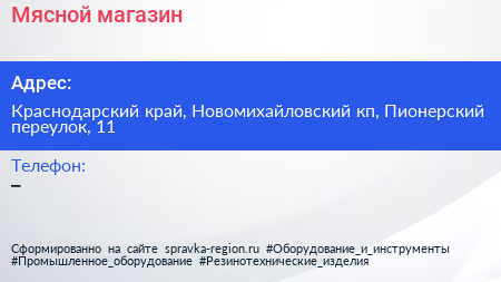 Мясной магазин по адресу Краснодарский край, Новомихайловский кп, Пионерский переулок, 11 в дальнейшем Организация, размещена в следующих категориях: