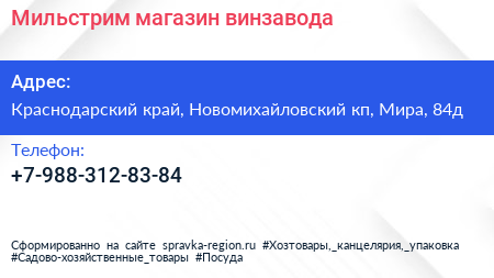 Мильстрим, магазин винзавода по адресу Краснодарский край, Новомихайловский кп, Мира, 84д в дальнейшем Организация, размещена в следующих категориях: