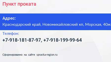 Пункт проката по адресу Краснодарский край, Новомихайловский кп, Морская, 40ж в дальнейшем Организация, размещена в следующих категориях: