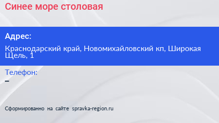 Синее море, столовая по адресу Краснодарский край, Новомихайловский кп, Широкая Щель, 1 в дальнейшем Организация, размещена в следующих категориях: