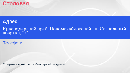Столовая по адресу Краснодарский край, Новомихайловский кп, Сигнальный квартал, 2/1 в дальнейшем Организация, размещена в следующих категориях: