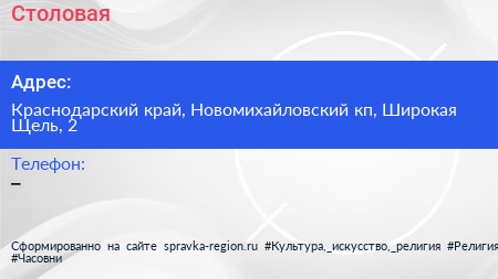 Столовая по адресу Краснодарский край, Новомихайловский кп, Широкая Щель, 2 в дальнейшем Организация, размещена в следующих категориях: