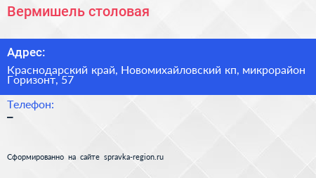Вермишель, столовая по адресу Краснодарский край, Новомихайловский кп, микрорайон Горизонт, 57 в дальнейшем Организация, размещена в следующих категориях: