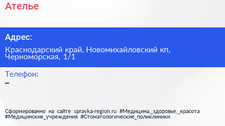 Ателье по адресу Краснодарский край, Новомихайловский кп, Черноморская, 1/1 в дальнейшем Организация, размещена в следующих категориях:
