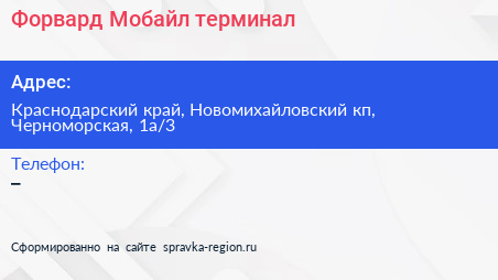 Форвард Мобайл, терминал по адресу Краснодарский край, Новомихайловский кп, Черноморская, 1а/3 в дальнейшем Организация, размещена в следующих категориях: