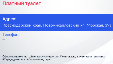Платный туалет по адресу Краснодарский край, Новомихайловский кп, Морская, 39а в дальнейшем Организация, размещена в следующих категориях: