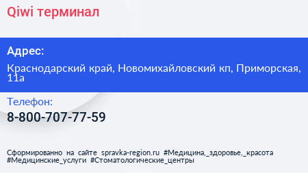 Qiwi, терминал по адресу Краснодарский край, Новомихайловский кп, Приморская, 11а в дальнейшем Организация, размещена в следующих категориях: