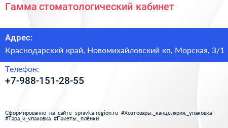 Гамма, стоматологический кабинет по адресу Краснодарский край, Новомихайловский кп, Морская, 3/1 в дальнейшем Организация, размещена в следующих категориях: