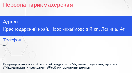 Персона, парикмахерская по адресу Краснодарский край, Новомихайловский кп, Ленина, 4г в дальнейшем Организация, размещена в следующих категориях: