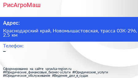 РисАгроМаш по адресу Краснодарский край, Новомышастовская, трасса 03К-296, 2.5 км в дальнейшем Организация, размещена в следующих категориях: