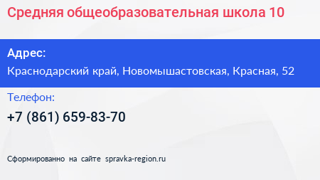 Средняя общеобразовательная школа №10 по адресу Краснодарский край, Новомышастовская, Красная, 52 в дальнейшем Организация, размещена в следующих категориях: