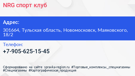 NRG, спорт-клуб по адресу 301664, Тульская область, Новомосковск, Маяковского, 18/2 в дальнейшем Организация, размещена в следующих категориях: