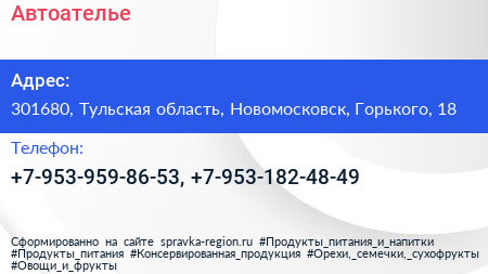 Автоателье по адресу 301680, Тульская область, Новомосковск, Горького, 18 в дальнейшем Организация, размещена в следующих категориях: