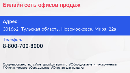Билайн, сеть офисов продаж по адресу 301662, Тульская область, Новомосковск, Мира, 22а в дальнейшем Организация, размещена в следующих категориях: