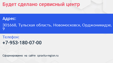 Будет сделано!, сервисный центр по адресу 301668, Тульская область, Новомосковск, Орджоникидзе, 9 в дальнейшем Организация, размещена в следующих категориях: