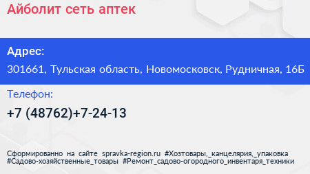 Айболит, сеть аптек по адресу 301661, Тульская область, Новомосковск, Рудничная, 16Б в дальнейшем Организация, размещена в следующих категориях: